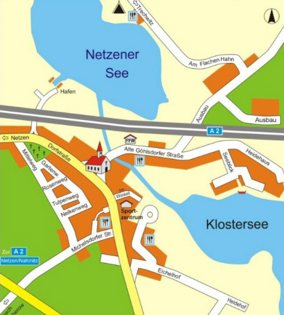 Der Netzener See liegt mitten im Brandenburger Land - Auf dem Wasserweg erreichen Sie von dort die Stadt Brandenburg nach 15 km, bis zum bekannten Lehniner Kloster sind es 2 km, 25 km nach Potsdam und 35 km bis zur Stadtgrenze Berlins - bis zur Havel 10 km.